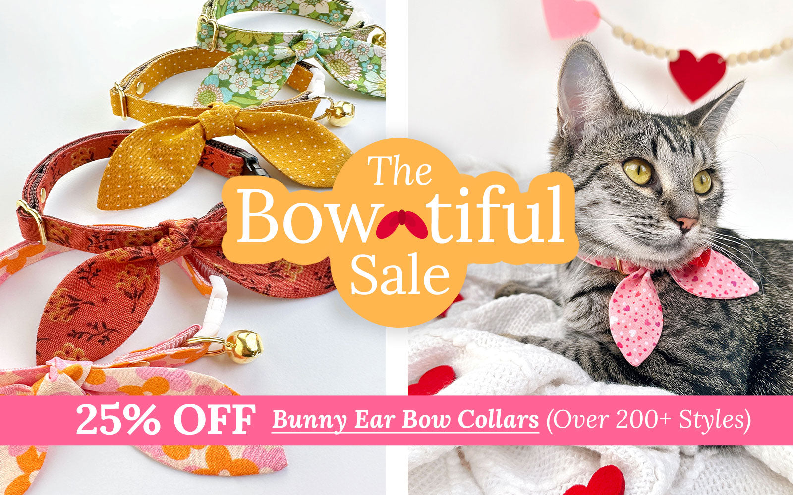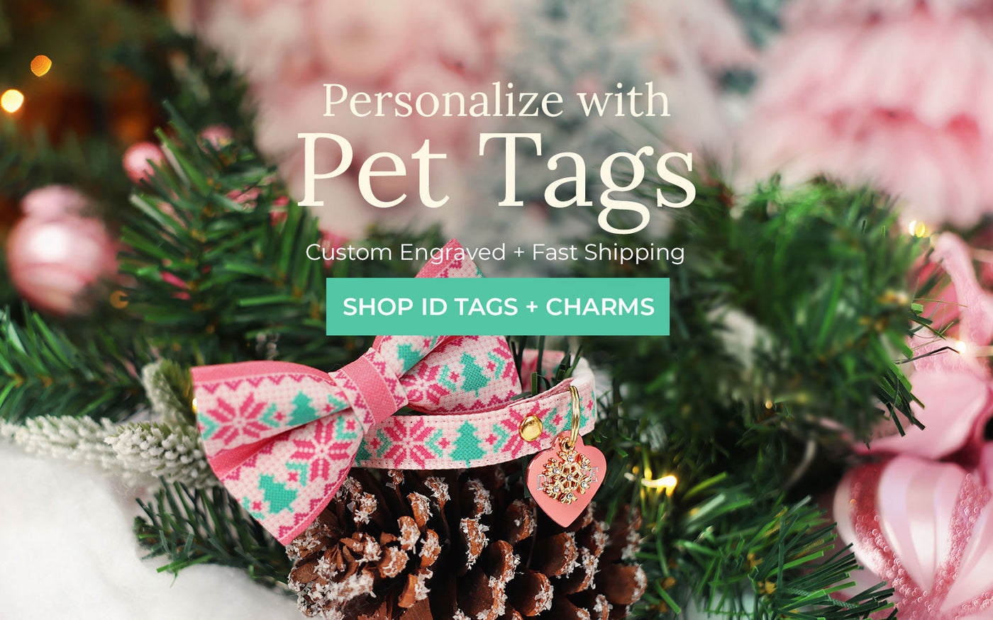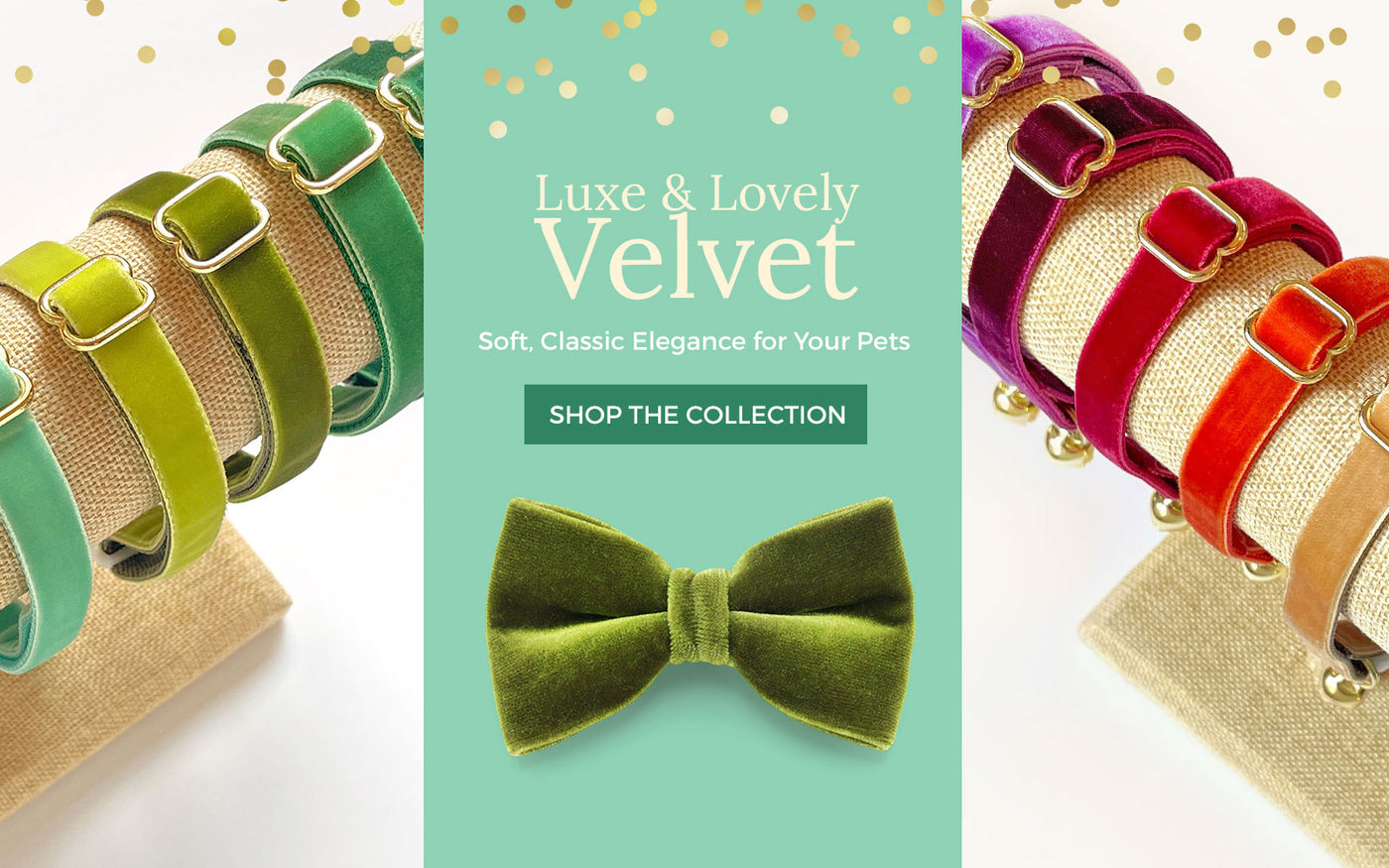 With 300+ designs for every holiday, season, and color theme —you can celebrate your pet’s personality in style. Choose your size, hardware finish, clasp type (breakaway or non-breakaway), plus matching bow ties, bandanas, and engraved ID tags for a complete look.